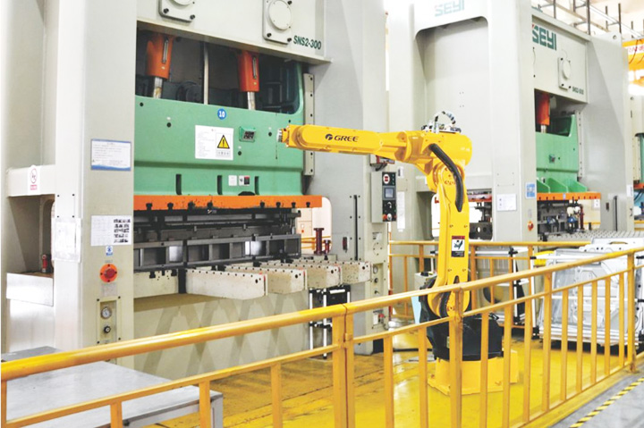 鈑金沖壓使用機(jī)械手,安全快速取件。